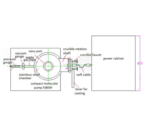 304不锈钢腔体,带有水冷夹层,可通入水冷却腔体上带有石英窗口,便于观察样品熔炼情况